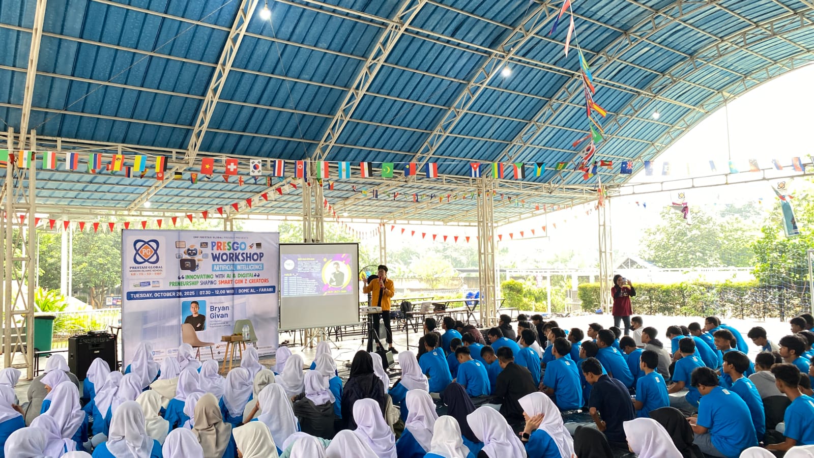 Milenianews.com, Depok– SMP Prestasi Global-Depok  kembali menunjukkan komitmennya sebagai Sekolah Digital Kreatif dengan menggelar Workshop AI INNOVAIZ pada Selasa, 28 Oktober 2025. Kegiatan yang berlangsung di Gedung Al Farabi ini menghadirkan narasumber Bryan Givan, seorang CBO (Chief Business Officer) dari perusahan digital kreatif serta sebagai praktisi dan digitalpreneur muda yang berbagi inspirasi tentang pemanfaatan Artificial Intelligence (AI) dalam dunia kewirausahaan digital.