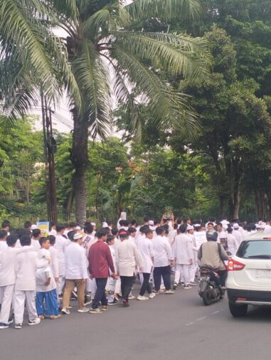 Tidak hanya para santri yang berjalan kaki membawa plakat, para santri dan aktivis dari KB-TK Yaa Bunayya juga berpartisipasi dengan menaiki kereta kelinci, menambah semarak suasana. Kegiatan ini berjalan lancar berkat dukungan dan pengamanan dari Polsek Mulyorejo, Security Pakuwon City, serta tim SAR Hidayatullah yang turut memastikan kelancaran jalannya parade.