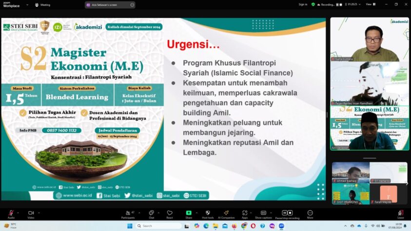 Milenianews.com, Depok– Program S2 Filantropi Syariah STEI SEBI yang bekerja sama dengan Akademizi menjembatani antara teori dan praktik dalam pengelolaan zakat. Mahasiswa yang belajar di program ini tidak hanya tahu dalam berbagai teori tetapi mampu mengelola zakat secara baik karena diampu kalangan dosen yang juga praktisi dalam bidang filantropi Syariah.