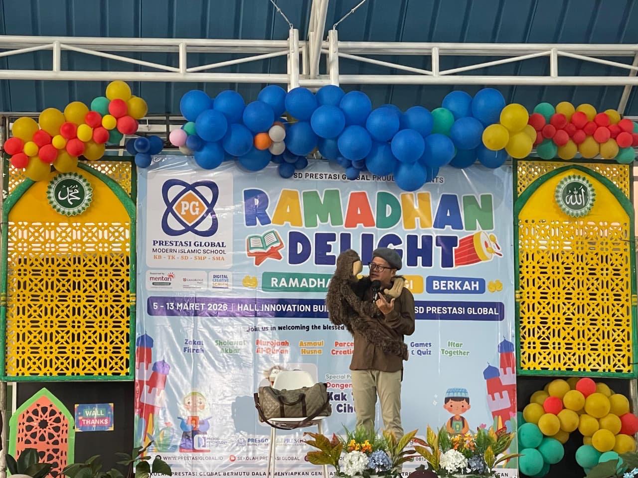 Keceriaan acara semakin terasa saat sesi dongeng Ramadhan yang dibawakan oleh Kak Tony dan Cihuy. Dengan gaya bercerita yang ceria dan interaktif, mereka berhasil menghibur sekaligus menyampaikan pesan moral tentang kebaikan, kejujuran, dan semangat beribadah di bulan suci Ramadhan sehingga para siswa dapat memahami nilai-nilai tersebut dengan cara yang menyenangkan.