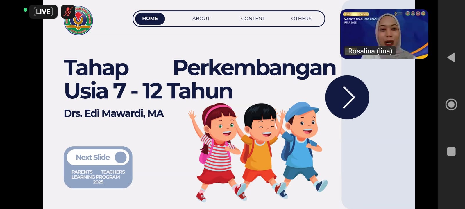 “Dalam hal ini saya membahas tahapan perkembangan anak usia 7-12 tahun. Agar anak mendapatkan perlakuan yang sesuai dengan tahapan perkembangan nya di rumah oleh orang tua dan guru di sekolah,” kata Edi Mawardi.