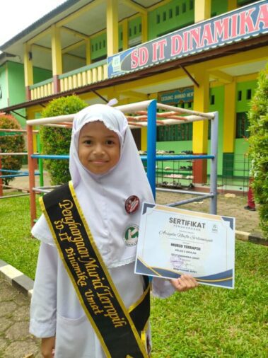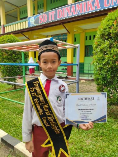 ”Saya senang sekolah di SD IT Dinamika Umat, temannya baik, ramah, bapak ibu guru juga sayang sama anak muridnya. Selama ini saya belum pernah menemui guru yang galak kepada murid. Yang ada guru yang tegas karena anak murid tidak disiplin,” ujar kelahiran 2 September 2012 itu.