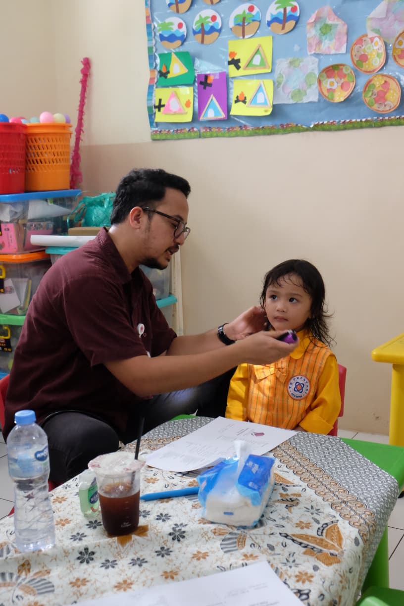 Pelaksanaan kegiatan dibagi menjadi tiga sesi agar setiap anak mendapatkan pengalaman pemeriksaan yang optimal. Hari Senin, 20 Oktober 2025 diikuti oleh kelas KB, B1, dan B2. Dilanjutkan pada Rabu, 22 Oktober 2025 untuk kelas A1 hingga A4, dan ditutup pada Kamis, 23 Oktober 2025 untuk kelas B3 hingga B6.