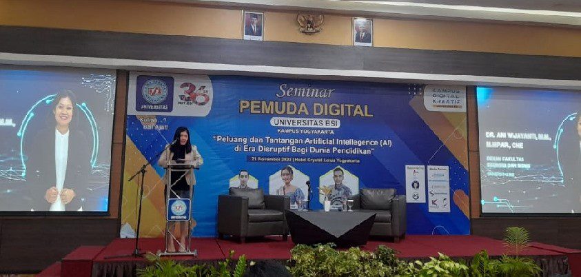 Milenianews.com, Yogyakarta– Universitas BSI (Bina Sarana Informatika) kampus Yogyakarta sebagai Kampus Digital Kreatif, menyelenggarakan seminar pemuda digital bertema “Tantangan dan Peluang Artificial Intelligence (AI) di Era Disruptif dalam Dunia Pendidikan” di Hotel Crystal Lotus, Yogyakarta, pada Selasa (21/11/2023). Acara ini dibuka oleh Dr. Ani Wijayanti, selaku dekan Fakultas Ekonomi dan Bisnis (FEB) Universitas BSI.