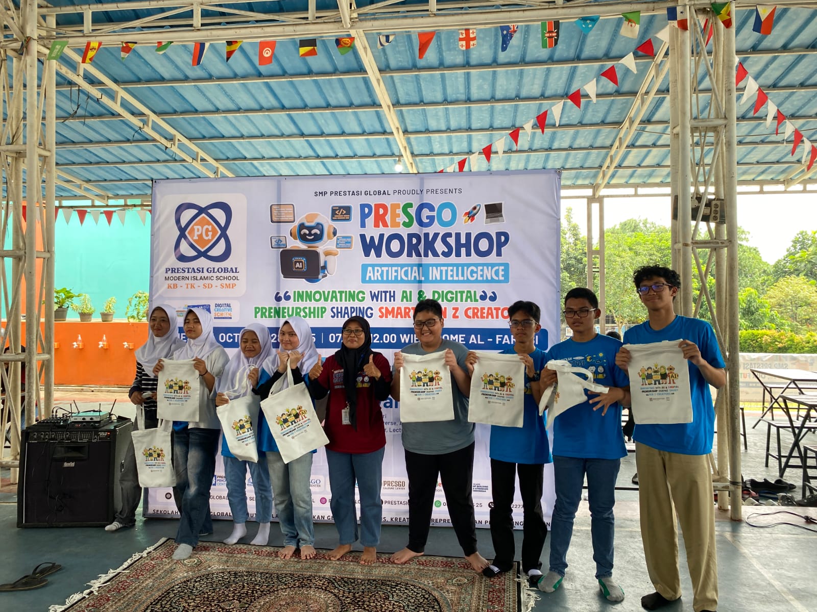 SMP Prestasi Global-Depok menggelar kegiatan Workshop AI INNOVAIZ, Selasa, 28 Oktober 2025. Para siswa diajak memahami konsep pemanfaatan Artificial Intelligence (AI) dalam dunia bisnis digital dan praktik langsung. (Foto: Dok PresGo)