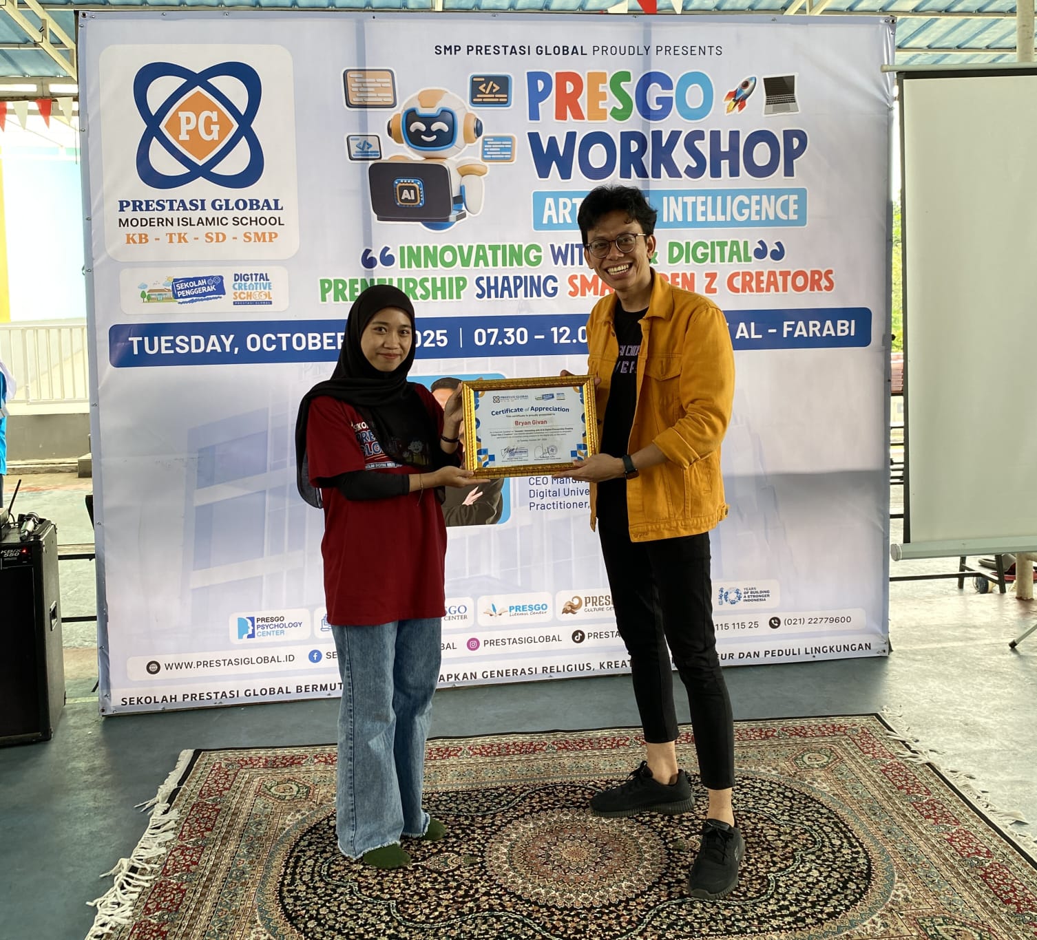 Sebagai sekolah yang berkonsep Sekolah Digital Kreeatif, SMP Prestasi Global berhasil mengajak siswanya untuk belajar langsung tentang dunia digitalpreneur bersama narasumber Bryan Givan, seorang  praktisi AI dan wirausahawan muda yang menginspirasi.
