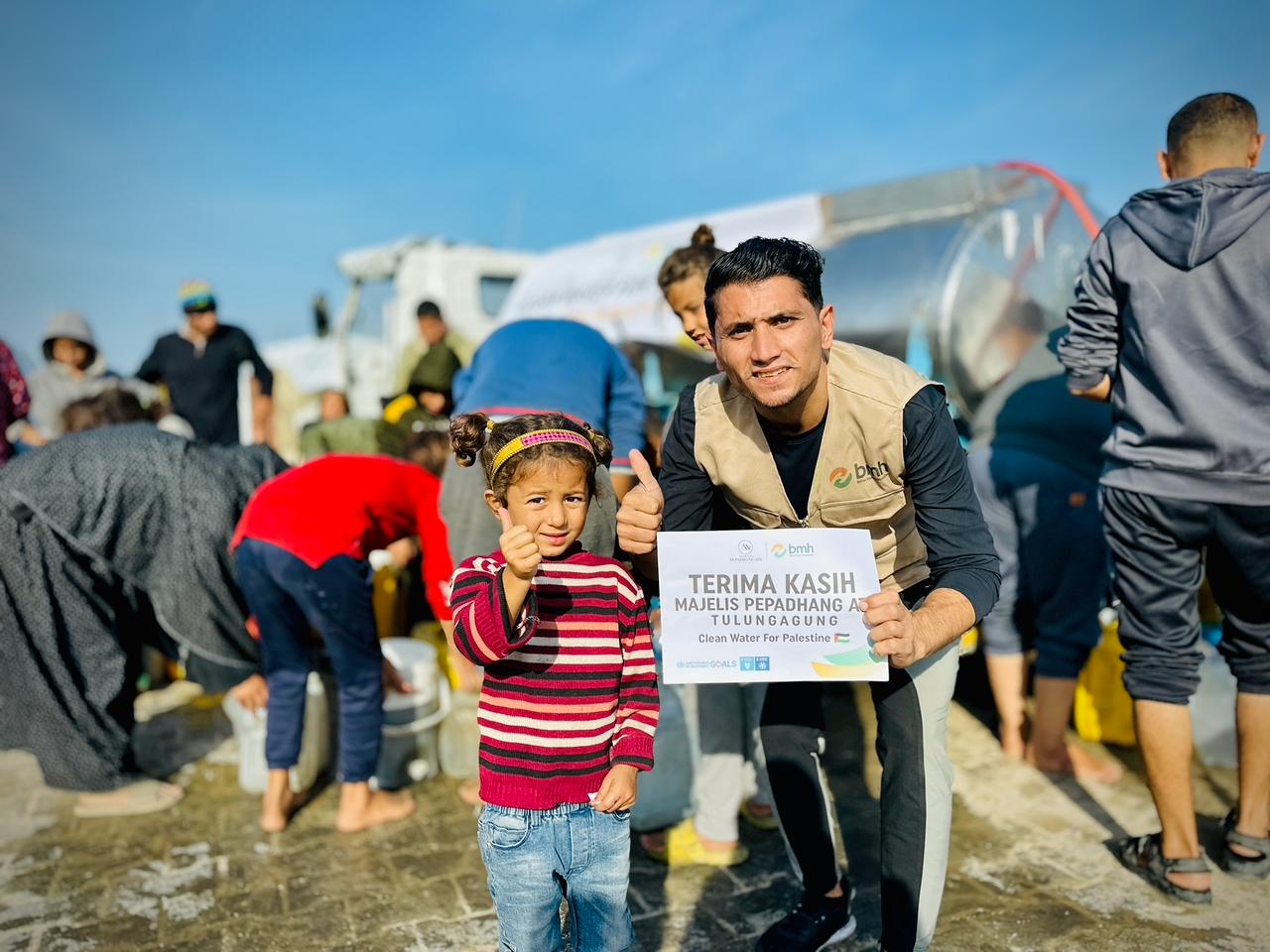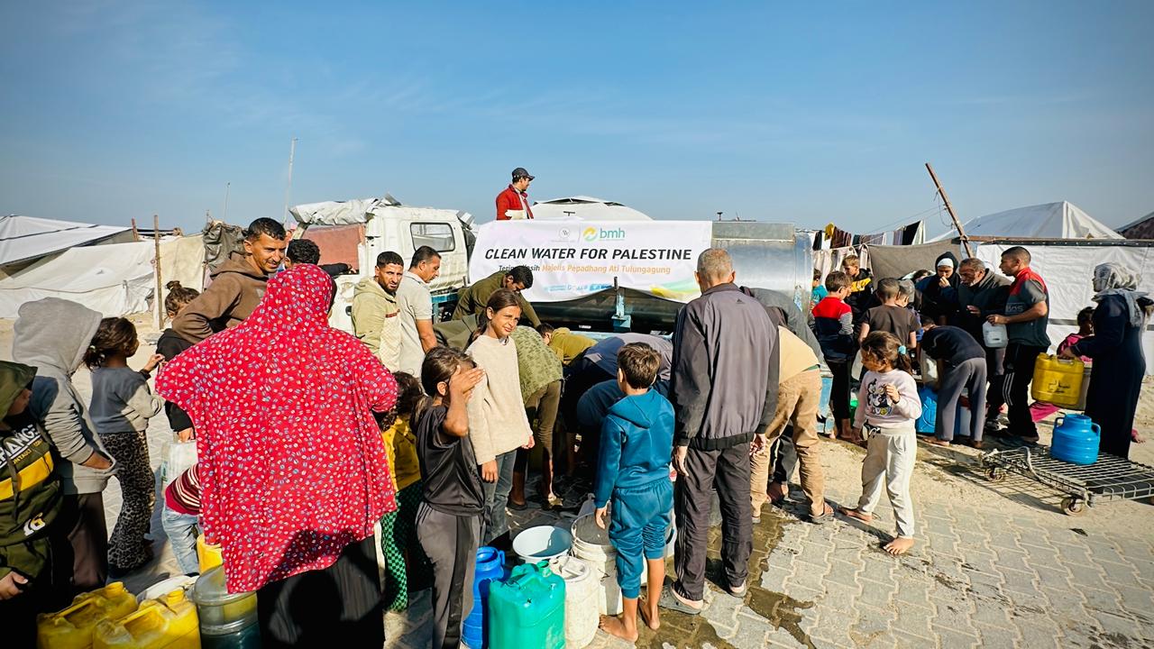 Pemandangan mengharukan terekam jelas saat truk tangki air tiba di lokasi pengungsian. Anak-anak kecil Gaza berlarian mendekat sambil mendekap jerigen kosong dengan wajah penuh binar. Bagi mereka, air bersih adalah kemewahan sekaligus harapan untuk tetap sehat dan bisa terus melangkah.