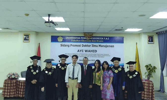 Disertasi Ayi Wahid mengangkat tema “Pengaruh Kompetensi, Kepemimpinan, dan Program Pelatihan terhadap Kepercayaan di Era Digital serta Implikasinya pada Kinerja Entrepreneur Usaha Mikro dan Kecil (UMK) di Provinsi Jawa Barat”.