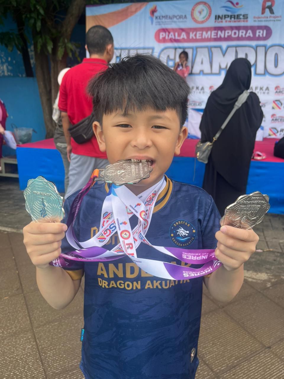 Milenianews.com, Cilegon– Prestasi membanggakan kembali diraih oleh siswa SD Bosowa Al Azhar, Cilegon. Kailash Afkari Arnawama, siswa kelas 2, sukses meraih tiga gelar juara pada Kejuaraan Renang INPERS I /Tahun 2025 Tingkat Open Tournament yang diselenggarakan oleh Kemenpora bekerja sama dengan INPERS. Kompetisi ini berlangsung di Kolam Renang GOR Ciracas, Jakarta Timur, Sabtu (15/11/2025), dan diikuti oleh para perenang muda dari berbagai daerah.
