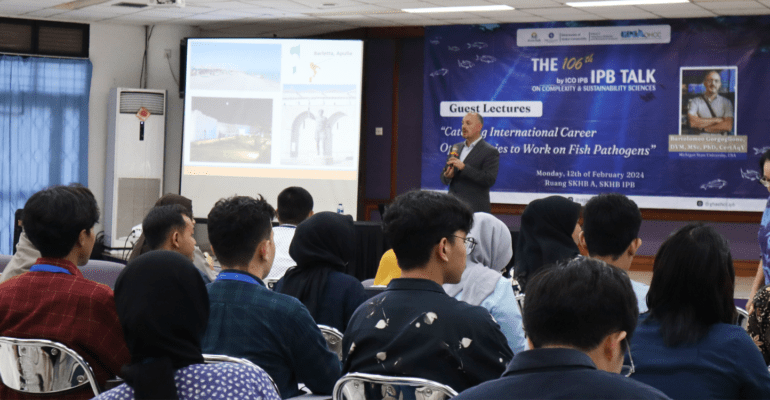 Bartolomeo Gorgoglione, seorang ilmuwan yang diakui secara internasional yang berdedikasi dalam bidang patobiologi dan imunologi ikan, mengadakan diskusi dengan seluruh unsur akademik, baik mahasiswa maupun dosen. Bartolomeo, yang pernah menjabat presiden World Veterinary Aqautic Veterinary Medical Association (WAVMA), menjelaskan tentang manfaat pendirian WAVMA Student Chapter di IPB University dan peluang pendidikan di masa depan sebagai anggota WAVMA.