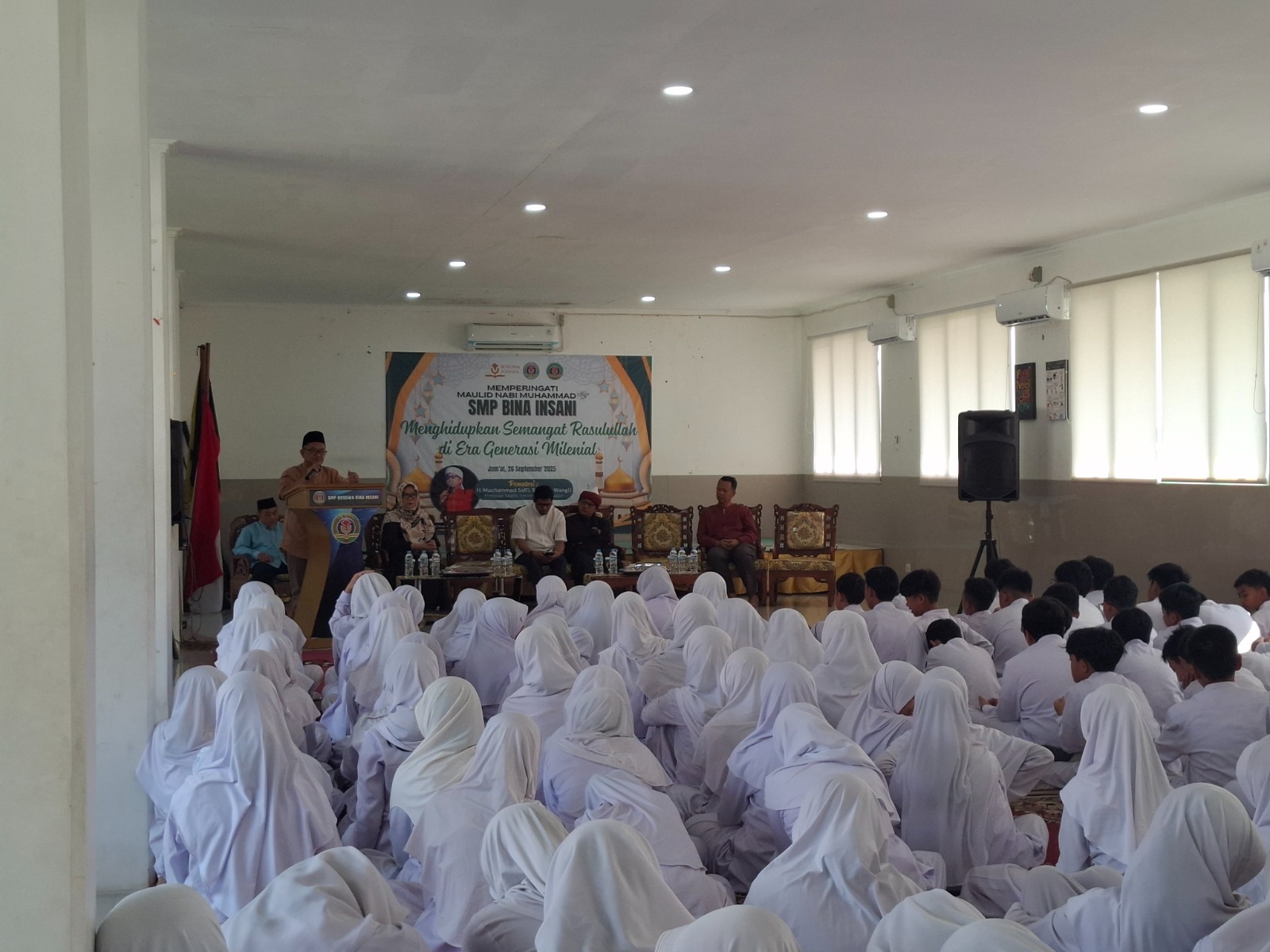 Milenianews.com, Bogor—SMP Bina Insani, Bogor, menggelar kegiatan Sirah Nabawiyah dengan tema “Menghidupkan Semangat Rasulullah SAW di Era Generasi Milenial”, Jumat (26/9/2025). Kegiatan dihadiri oleh Head of Bosowa School Eko Ariyanto, dan dibuka oleh Head of Islamic Studies Bosowa School Ustadz Asep Sumarsana SAg. Adapun narasumber adalah H. Muchammad Safi’i SS. (Ustadz Wagi).