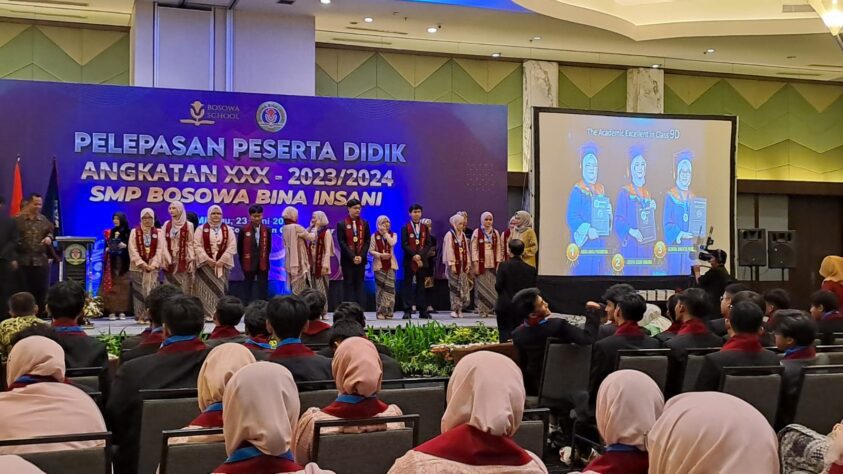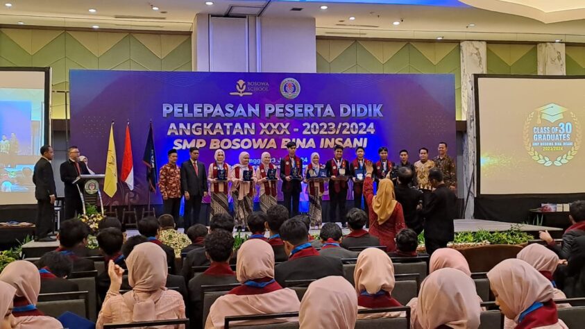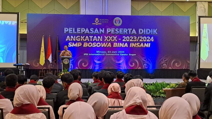 Milenianews.com, Bogor—SMP Bina Insani mengadakan acara pelepasan peserta didik angkatan ke-30 di IPB International Convention Center, Bogor, Ahad (25/6/2024). “Siswa SMP Bina Insani angkatan ke-30 berjumlah 84 orang. Alhamdulillah lulus 100 persen,” kata Kepala SMP Bina Insani Haposan Andi Citra saat memberikan kata sambutan.