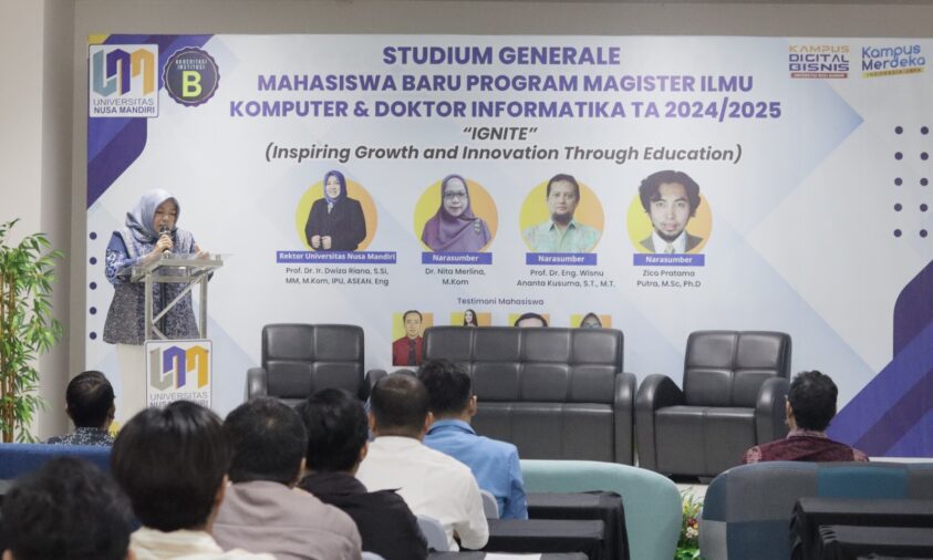 Milenianews.com, Depo— Universitas Nusa Mandiri (UNM) kembali menggelar acara akademik bergengsi, Studium Generale Semester Genap 2024/2025, dengan tema “IGNITE (Inspiring Growth and Innovation Through Education)” di UNM Kampus Margonda. Acara yang diselenggarakan pada Sabtu 15 Maret 2025, oleh Program Studi Informatika Program Doktor ini bertujuan untuk memberikan wawasan dan inspirasi kepada mahasiswa baru mengenai perkembangan ilmu pengetahuan dan teknologi terkini.