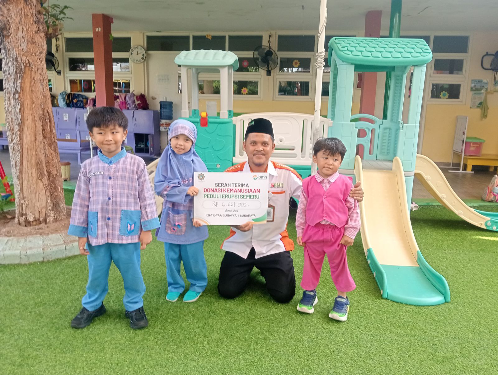 Milenianews.com, Surabaya– Solidaritas kemanusiaan tidak memandang usia. Hal ini dibuktikan oleh para siswa KB-TK Yabunayya 1 Surabaya yang menunjukkan kepedulian nyata bagi masyarakat terdampak erupsi Gunung Semeru. Melalui Baitul Maal Hidayatullah (BMH), para siswa menyerahkan donasi sebagai wujud empati yang ditanamkan sejak dini di lingkungan sekolah.
