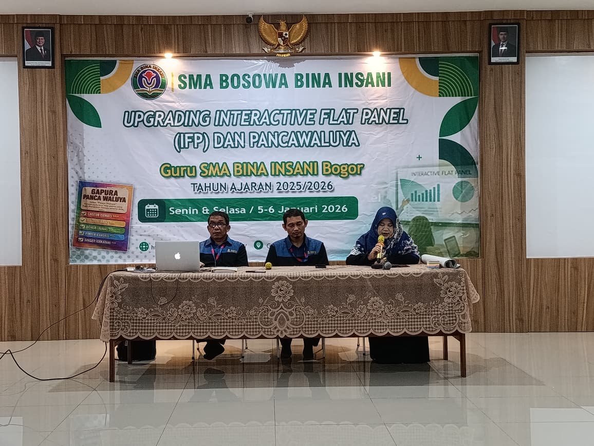 Milenianews.com, Bogor– Sebagai upaya memperkuat kompetensi pendidik di era digital dan memperkokoh fondasi karakter Pancawaluya siswa, SMA Bina Insani Bogor menghelat Upgrading Interactive Flat Panel (IFP) dan Pancawaluya bagi Guru dan Tenaga Kependidikan, Senin dan Selasa, 5–6 Januari 2026.