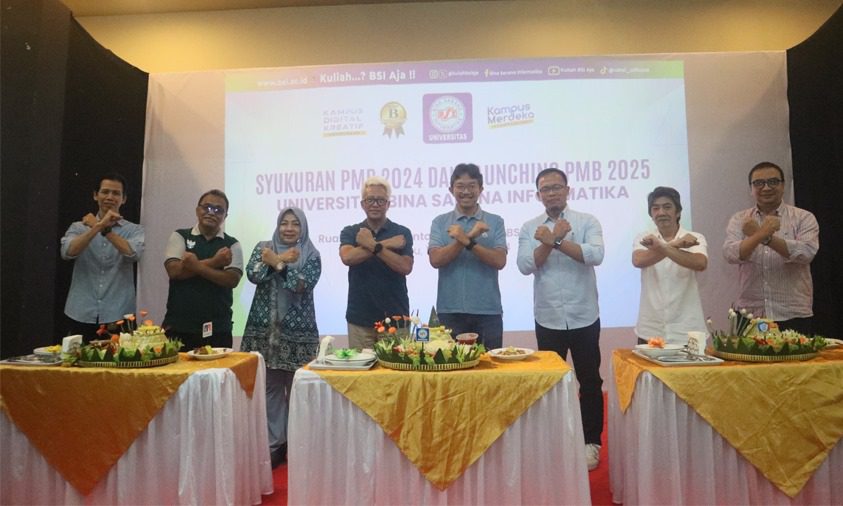 Milenianews.com, Bekasi–  Universitas BSI (Bina Sarana Informatika) dengan bangga menggelar acara syukuran Penerimaan Mahasiswa Baru (PMB) 2024 dan peluncuran  PMB 2025 yang berlangsung di ruang theater lantai 4 Universitas BSI Kampus Kaliabang, Bekasi,   Sabtu, 12 Oktober 2024. Acara ini dihadiri oleh pimpinan Universitas BSI, termasuk Rektor Universitas BSI, Prof. Dr.  Ir.  Mochamad Wahyudi, jajaran rektorat dan dosen.