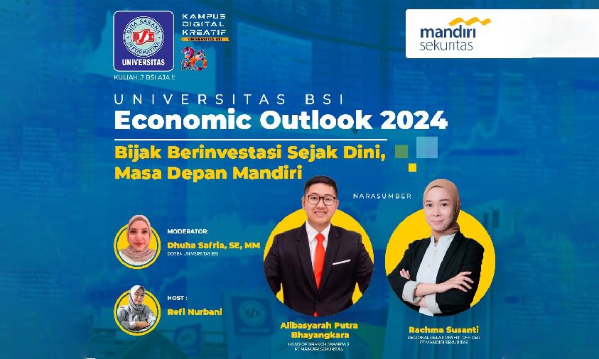 Milenianews.com, Jakarta– Program Studi (Prodi) Manajemen Universitas BSI (Bina Sarana Informatika) kampus Kramat 98 berencana melaksanakan Economic Outlook 2024 , Jumat, 22 Desember 2023.