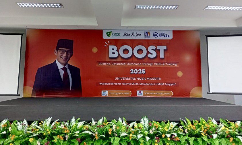 Mengusung tema “Melesat Bersama Talenta Muda, Membangun UMKM Tangguh”, BOOST 2025 digelar pada Rabu-Kamis, 13–14 Agustus 2025 di Aula Nusa Mandiri Tower. Program ini mencakup pelatihan, pendampingan, mentoring intensif, sesi pembelajaran praktis, business coaching, showcase, hingga peluang akses permodalan.