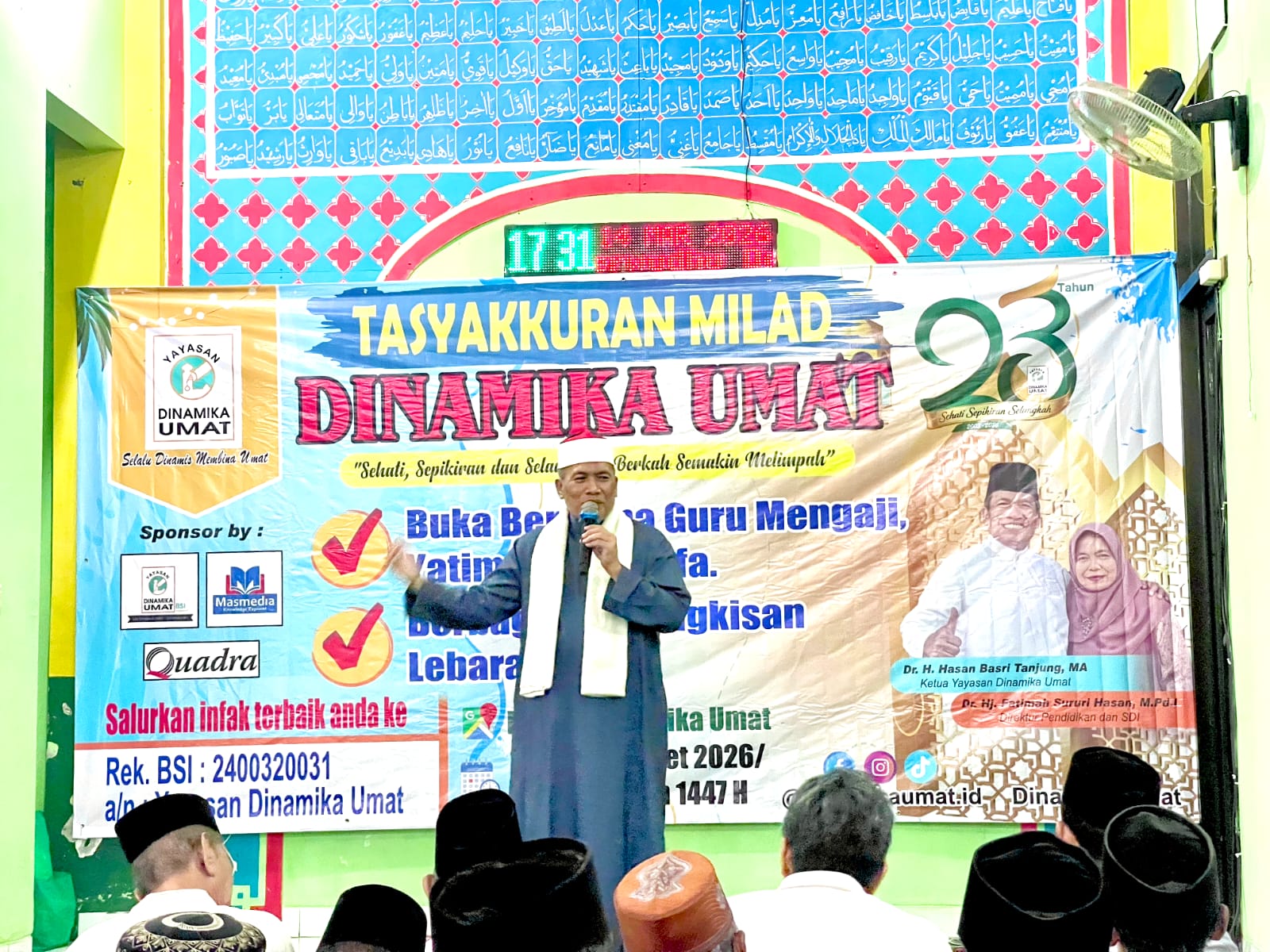 ”Tak terasa, tepat 24 Maret 2026 nanti, Yayasan Dinamika Umat genap 23 tahun berlayar ke samudera dakwah dan pendidikan. Setiap tahun diadakan Tasyakkuran Milad dan bertepatan Buka Puasa Bersama dengan guru mengaji dan dhuafa. Tahun ini sebanyak 500 bingkisan pun dikumpulkan dari orang tua murid dan donatur untuk dibagikan kepada mustahik, terutama warga sekitar dan guru-guru mengaji di sekitar perumahan Telaga Kahuripan,” paparnya.
