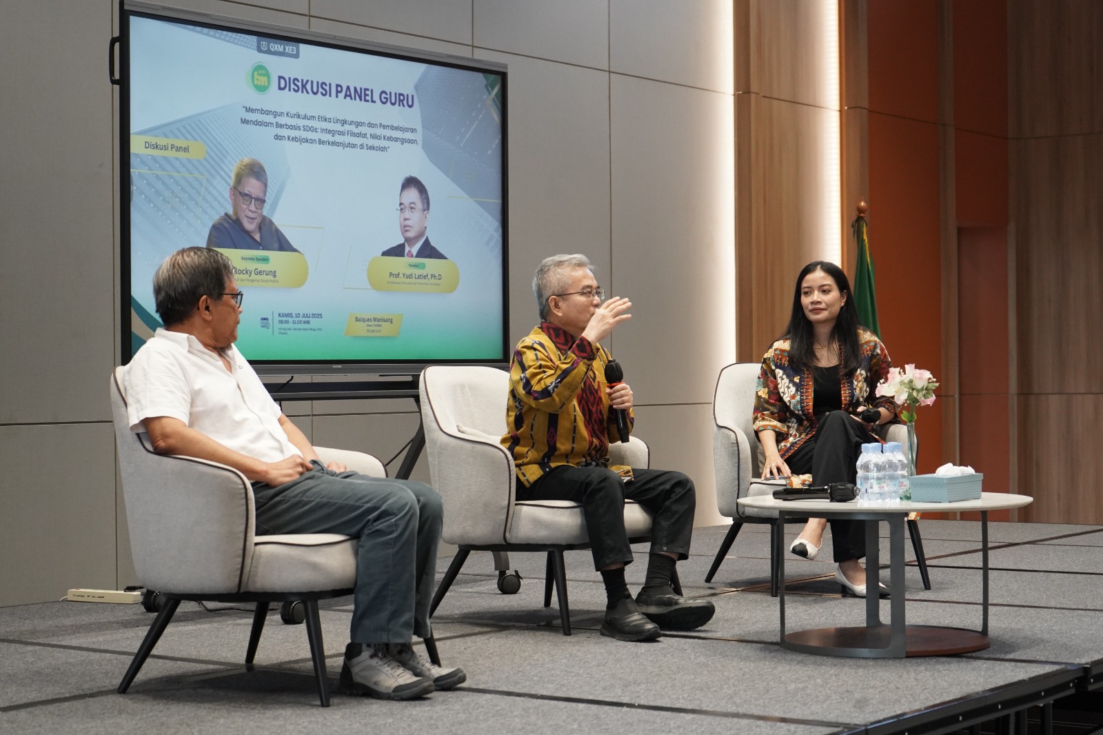 Hal itu disampaikan cendekiawan Prof. Dr. Yudi Latif, MA dalam diskusi panel bertajuk “Membangun Kurikulum Etika Lingkungan dan Pembelajaran Mendalam Berbasis SDGs: Integrasi Filsafat, Nilai Kebangsaan, dan Kebijakan Berkelanjutan di Sekolah”. yang digelar di Invinity Hall Sekolah Bakti Mulya (BM) 400 Cibubur, Kamis (10/7/2025) dan dihadiri oleh lebih dari 350 guru dari Jakarta dan sekitarnya.