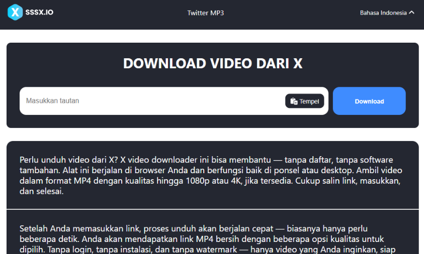 Untuk menjawab kebutuhan tersebut, hadirlah sssx.io, situs downloader yang memungkinkan mengunduh video dari X dengan mudah.